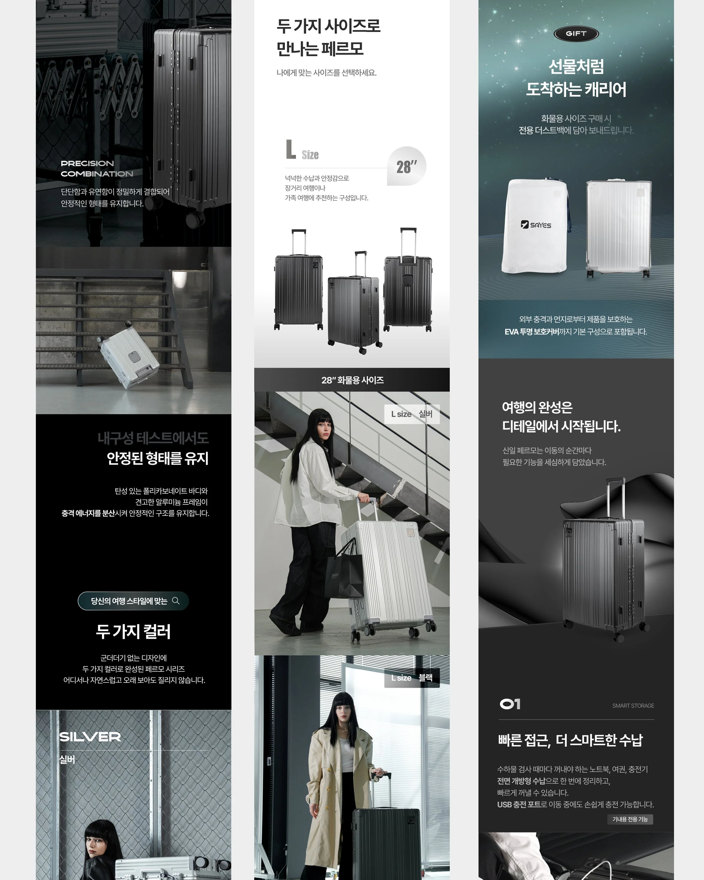 페르모 캐리어의 컬러 무드에 맞는 스튜디오를 선정해 제품 단독 촬영과 모델 촬영을 진행했습니다. 실제 사용 환경을 기반으로 한 연출 컷을 통해 제품의 실용성과 내구성이 효과적으로 드러나도록 구성했습니다.