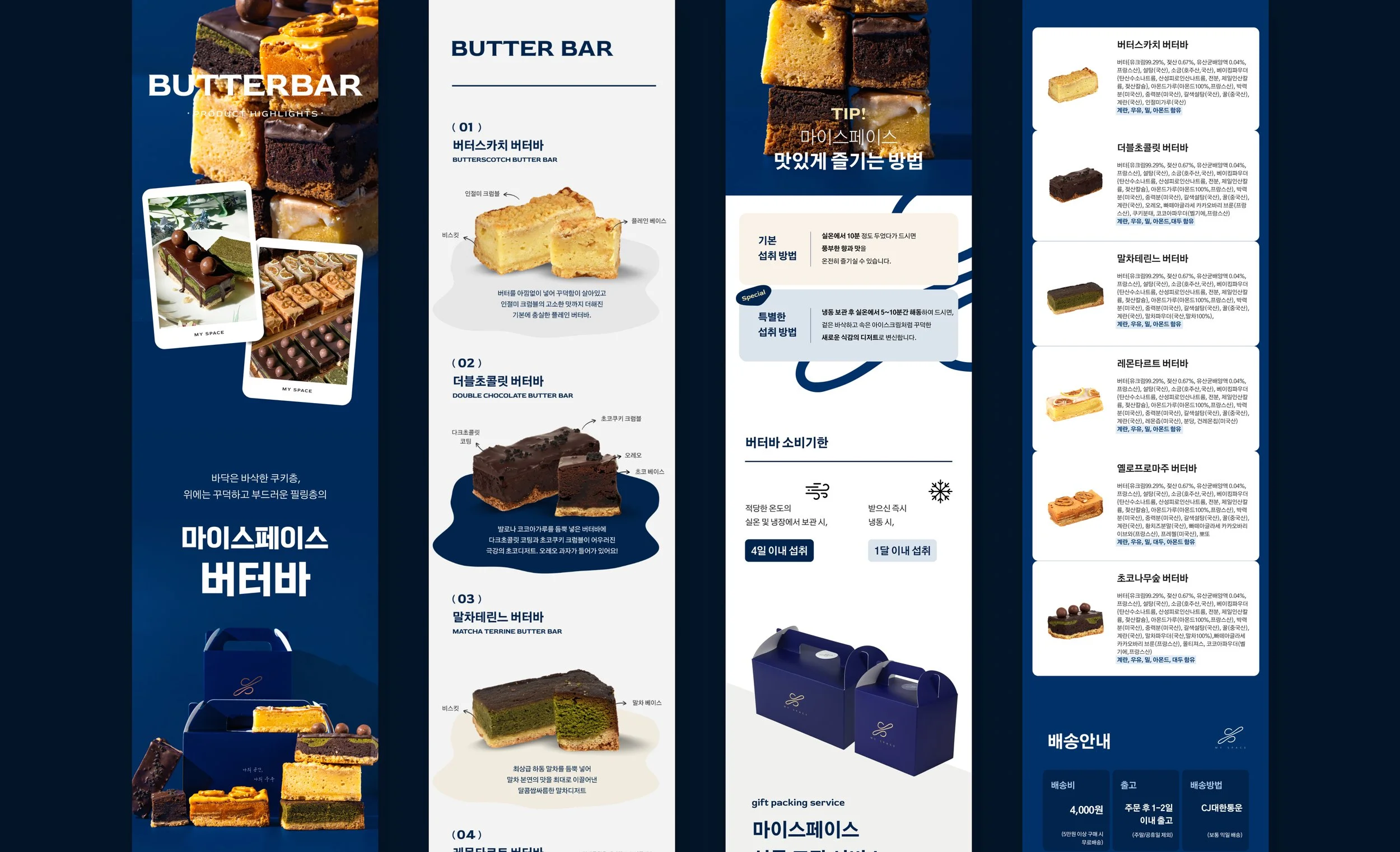 마이 스페이스는 일상 속에서 즐길 수 있는 디저트를 제안하는 브랜드로, 휘낭시에, 버터바, 르뱅 쿠키 등 다양한 제품을 판매하고 있습니다. 전 상품 상세페이지를 담당해 각 디저트의 개성이 명확히 드러나도록 기획과 디자인을 진행했으며, 브랜드 무드와 구매 경험의 완성도를 함께 높였습니다.